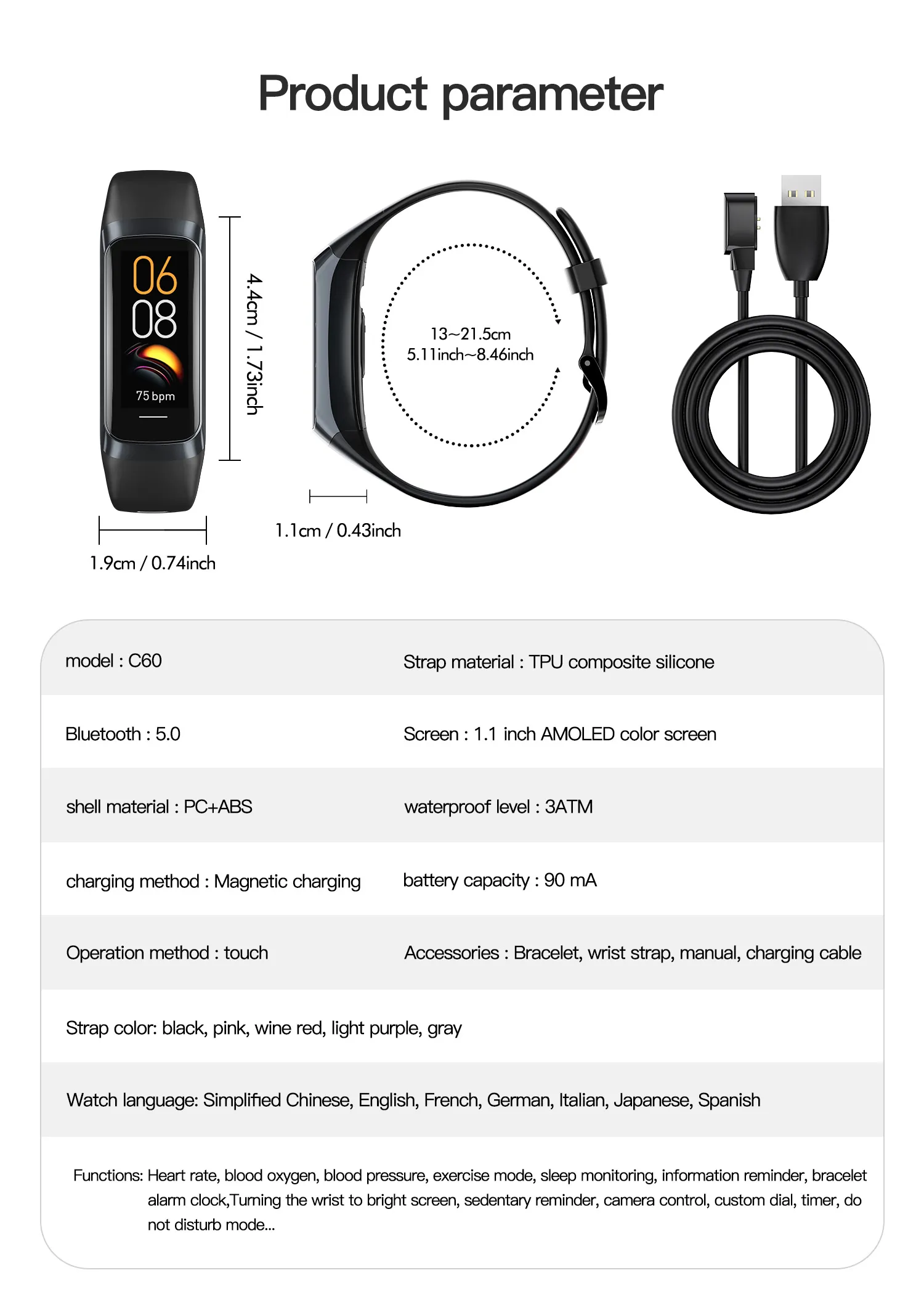 - AMOLED Color Display — 1.1-inch HD screen shows your data clearly and stylishly.