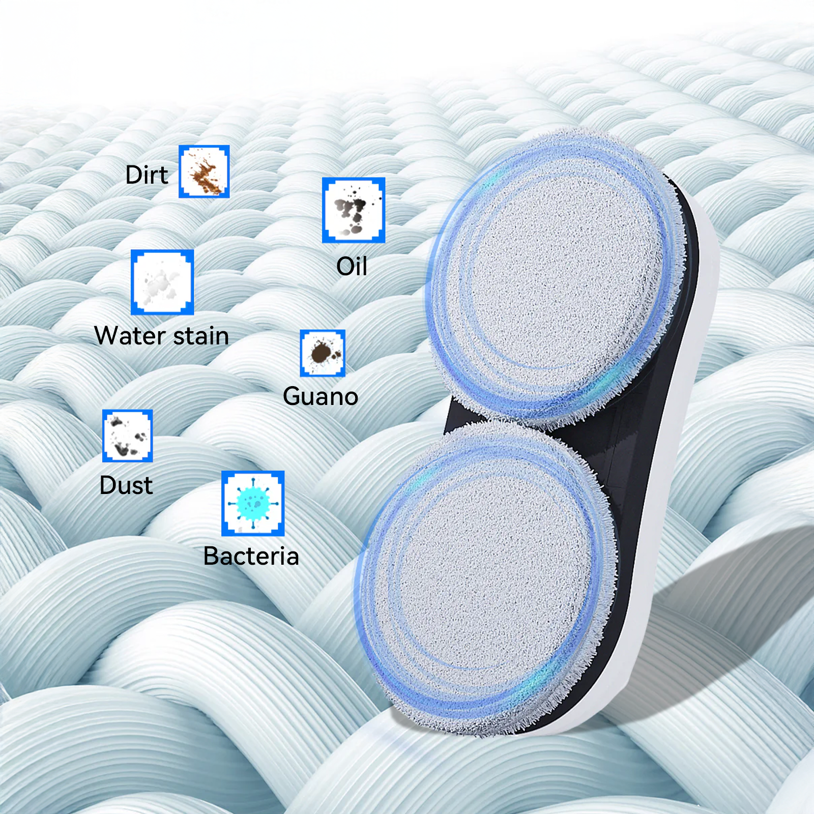 • Dual Rotating Mops – Two 360° spinning pads scrub away dirt, water marks, and grease for crystal-clear windows.